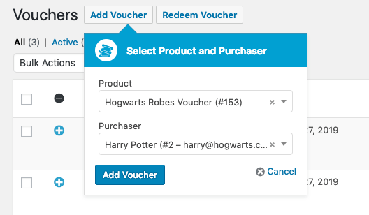 Once the voucher product is ordered, a pending voucher is created. The voucher will generate when the order is marked as paid (typically Processing or Completed status, depending on your Grant Access to Downloadable Products After Payment setting, found under WooCommerce > Settings > Products > Downloadable Products). Once generated, the voucher will move to active status.